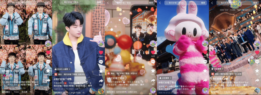 即使季终暂别,《我们好极了歌会》也用满满温情续写“不散场”的陪伴续章。大张伟的“四屏拍手转场”短视频,用活力笑容与观众定下“明年再见”的约定;黄子弘凡拨通“时光电话”,回望每一期在舞台上闪闪发光的自己,也致敬一路陪伴的观众;“大弘大子”合拍吹蜡烛视频,将感恩与期待藏进烛火;幕后工作人员也加入“整活”阵营,分享抖音热舞“集邮花絮”,收官时刻的走心表白也让观众看见每期节目背后的真挚用心……